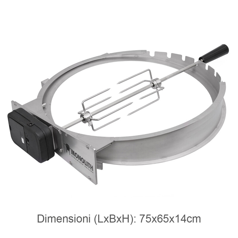 Così puoi preparare senza sforzo pollame, cosce di agnello o shish kebab di verdure con tutti i vantaggi della griglia in ceramica. Migliora la tua esperienza di grigliata con il girarrosto MONOLITH LeChef! Ti offre l'opportunità di creare una varietà di deliziosi piatti a base di spiedini sulla tua griglia MONOLITH. Sia che tu voglia preparare un abbondante arrosto allo spiedo, un pollo succulento o dei gyros piccanti.