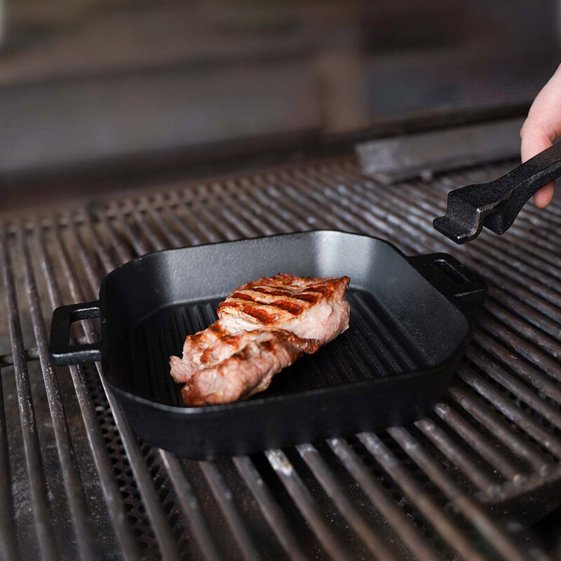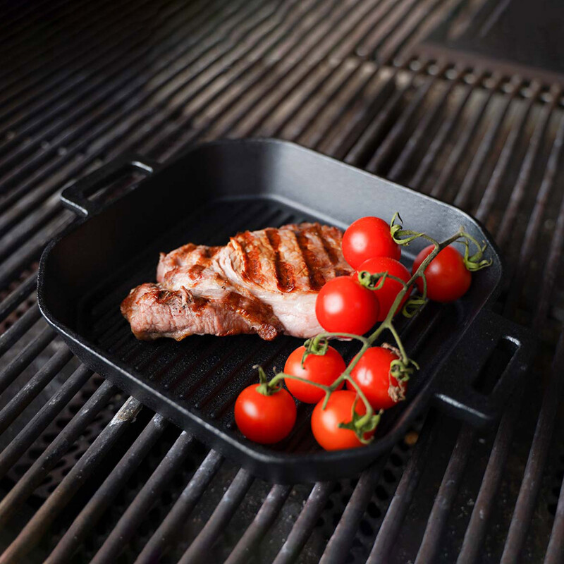 Ideale per grigliare o per l'uso in cucina. Il fondo scanalato garantisce un grill mark perfetto.