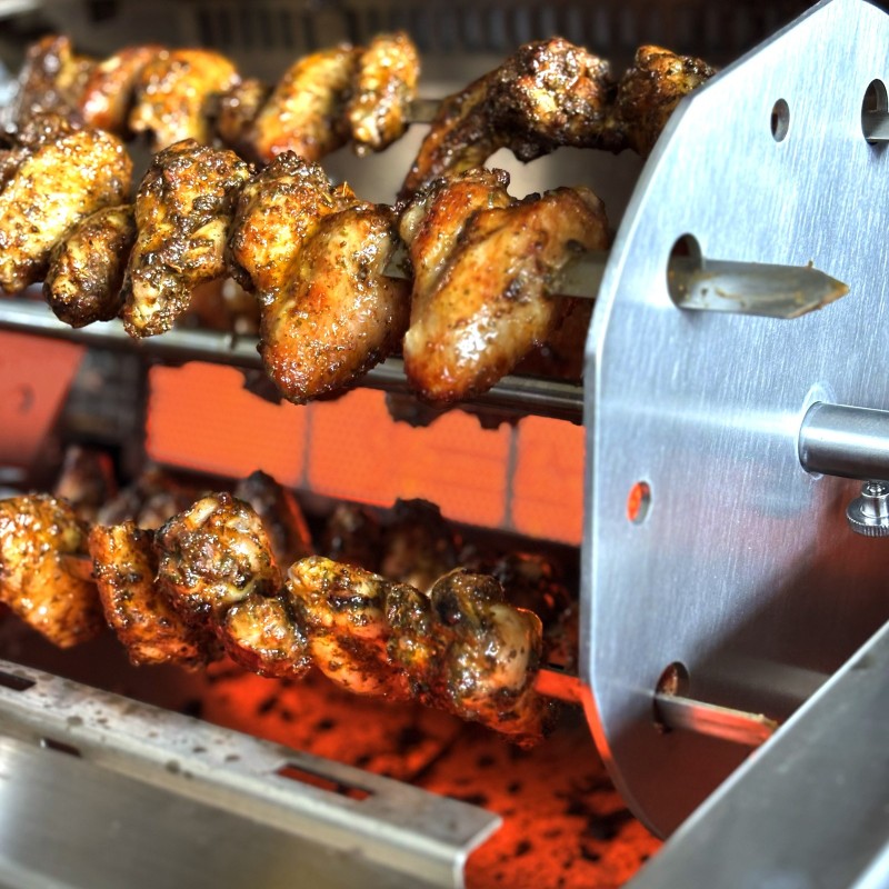 Compatibile con il girarrosto Flammkraft, ad esempio fino a 3 kg di ali di pollo contemporaneamente
