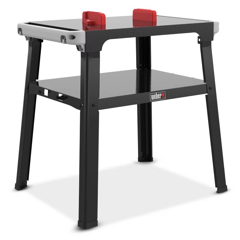 Regola il tuo Lumin® o Lumin® Compact all’altezza di cottura perfetta. Le guide laterali nella parte superiore del supporto sono dotate di due ganci integrati per gli utensili e sono compatibili con gli accessori Weber Works a incastro, come l’illuminazione flessibile, il portaspezie e altro ancora (venduti separatamente). Include anche un ripiano per gli accessori essenziali, con altri due ganci per appendere le griglie.