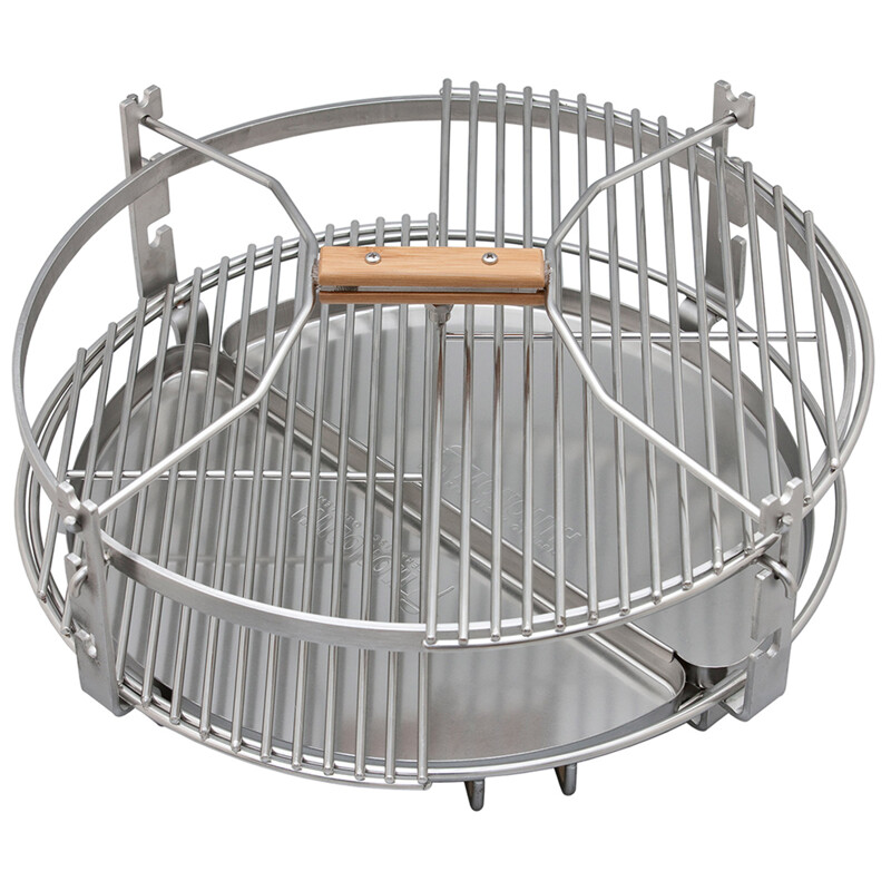 Con lo Smart Grid System puoi trasformare il tuo Kamado in un nuovo sistema innovativo. Ciò crea maggiori possibilità di cottura e flessibilità completamente nuove: grazie agli accessori semicircolari, SGS consente di dividere la superficie della griglia e utilizzarla in modi diversi. Dal deflettore di calore alle vaschette raccogligrasso fino alla griglia, che puoi posizionare anche a diverse altezze, offre un'ampia gamma di possibili utilizzi. Ciò significa che puoi cucinare direttamente sulla brace su un lato della griglia, mentre utilizzi il deflettore di calore e nell'altra metà puoi avere una cottura indiretta con un nuovo livello in cucina.