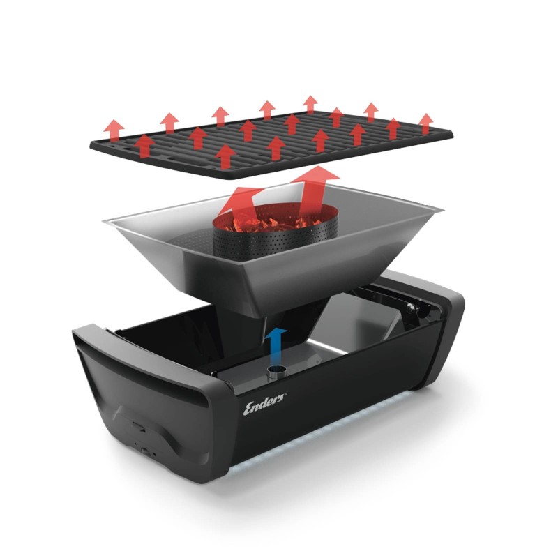 AURORA® ha molto da offrire. Il fumo non è una di queste cose. Mentre altri barbecue da tavolo a carbonella producono fumo come locomotive a vapore, questo barbecue sfrigola in modo pulito e discreto. La tecnologia di ventilazione E-FAN, alimentata a batteria ed estremamente silenziosa, consente un funzionamento senza emissioni. Questo non solo accende il vano per la carbonella, facile da riempire, sotto la superficie di cottura smaltata, ma anche la tua passione per la grigliata, alla vecchia maniera.