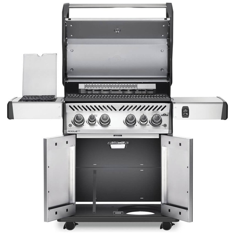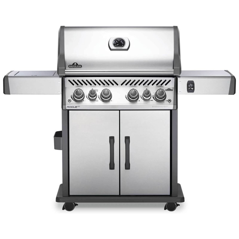 Il barbecue a gas Napoleon Rogue® SE 525 in acciaio inox con bruciatore posteriore e bruciatore laterale a infrarossi è un barbecue resistente in acciaio inox !