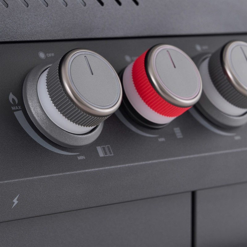 L'accensione piezoelettrica PRIME FIRE® funziona indipendentemente dai bruciatori principali e le manopole illuminate NIGHT PILOT® ne facilitano l'utilizzo al buio.