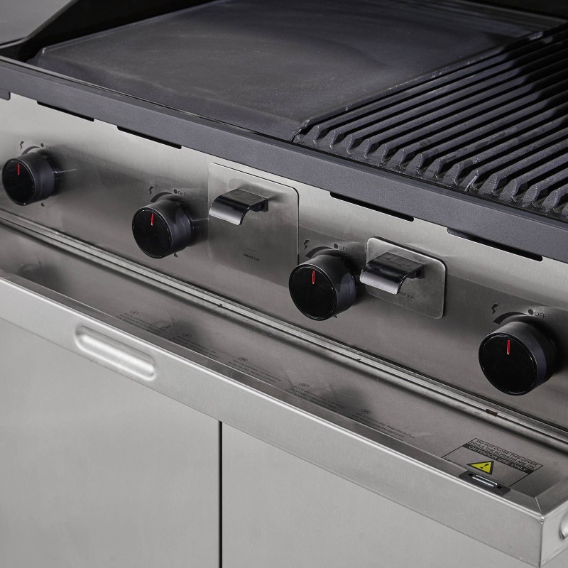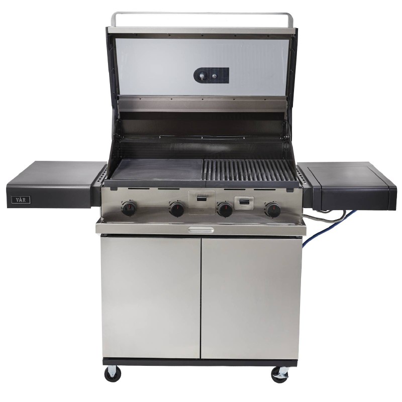 Il barbecue Sunwind Var è unico nel suo genere. Realizzato in acciaio di altissima qualità e dotato di 4 potenti bruciatori in ghisa, un bruciatore laterale e una superficie di cottura large.