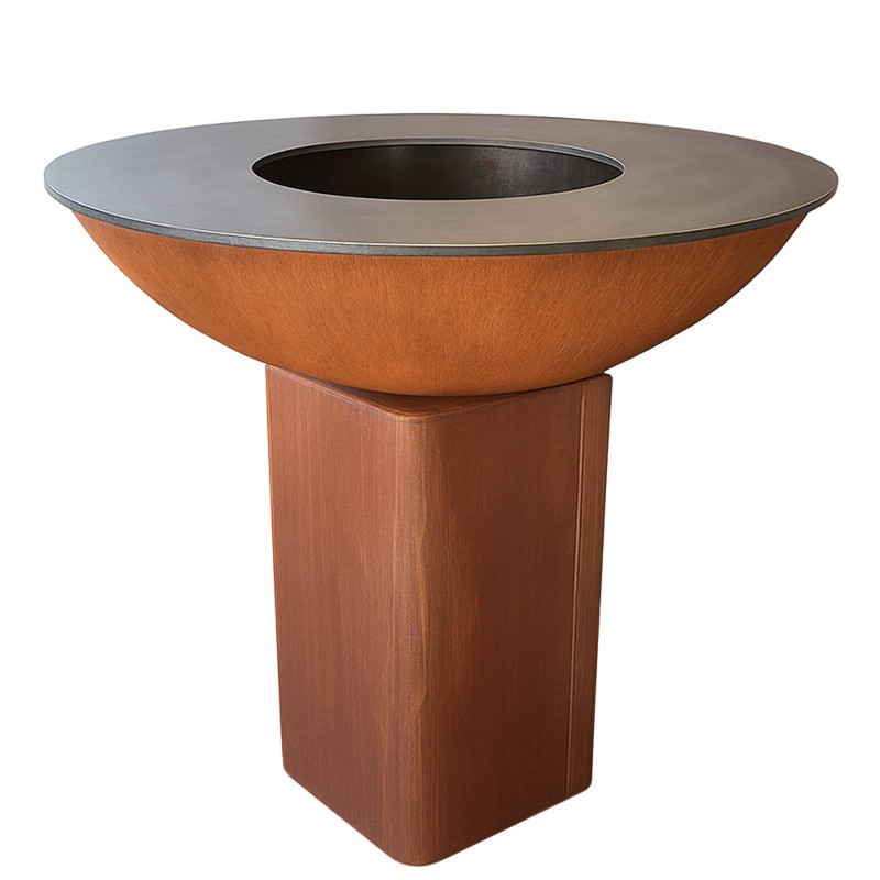 Il Quoco Curvo Corten 94 è un braciere e una griglia per plancha di alta qualità, che offre una soluzione elegante e funzionale per cucinare all'aperto.