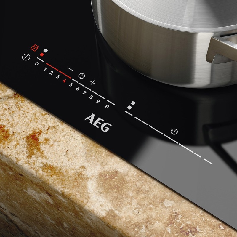 Il piano cottura a induzione Aeg Domino Crystal Line è dotato di una grande zona di cottura indipendente, che reagisce in modo istantaneo alle regolazioni di temperatura.