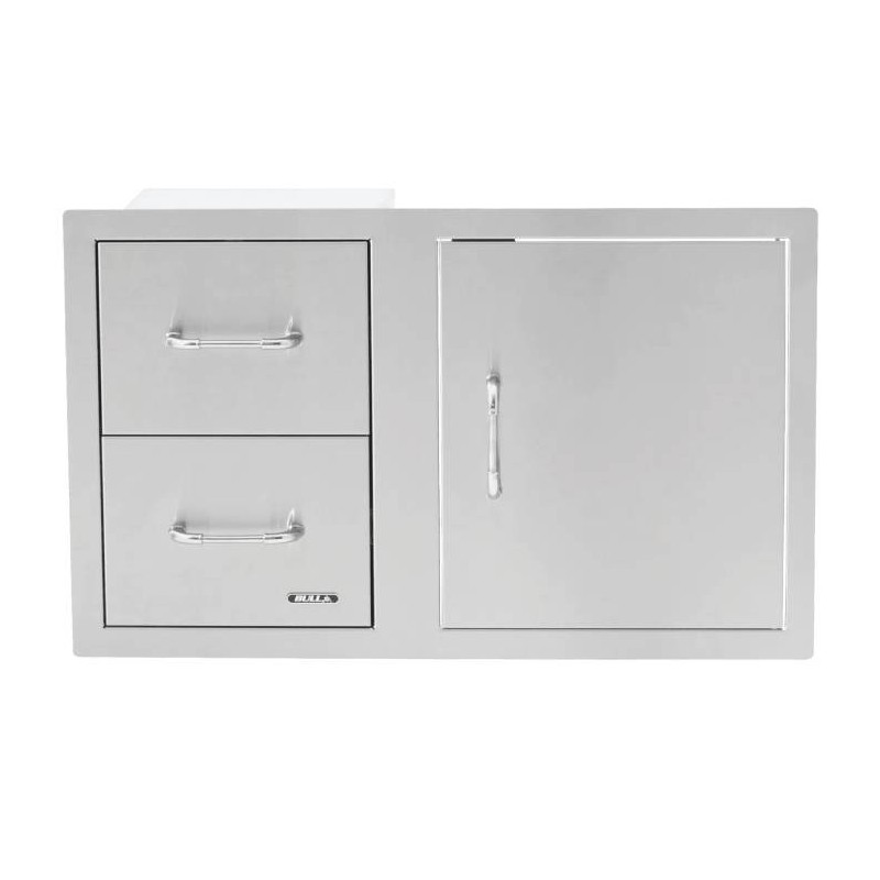 Cassetto doppio e sportello, in acciaio inox, per permetterti di riporre comodamente tutti i tuoi accessori di cottura.