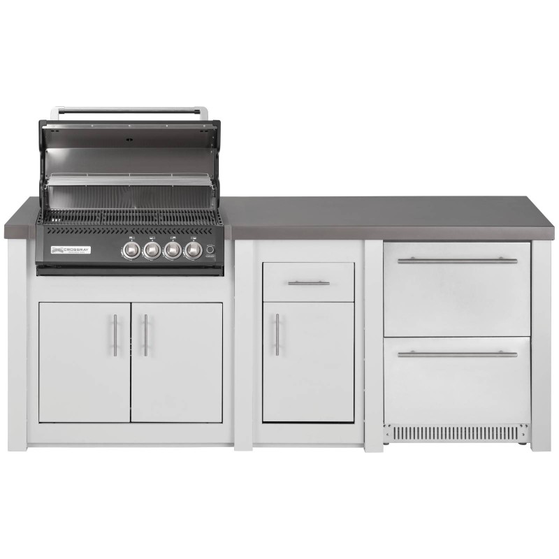 CUCINA DA ESTERNO GRANDPRO ALUKITCHEN BIANCA CON BBQ CROSSRAY BLACK E FRIGORIFERO