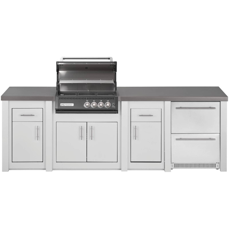 CUCINA DA ESTERNO GRANDPRO ALUKITCHEN BIANCA CON BBQ CROSSRAY BLACK SERVIZI E FRIGORIFERO
