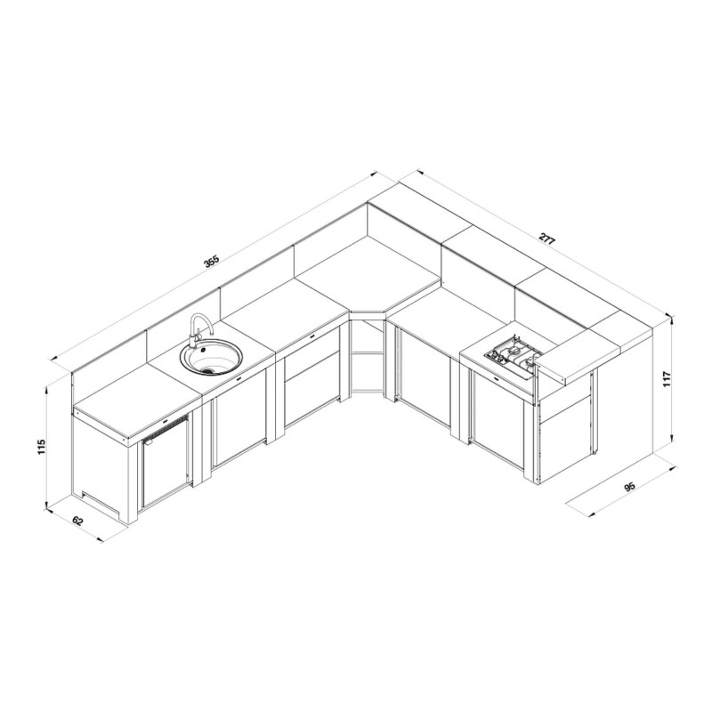 Composto da 6 moduli angolari con bancone bar, questo set da cucina è una cucina completa che offre la garanzia di una cucina da esterno funzionale, estetica e facile da installare.