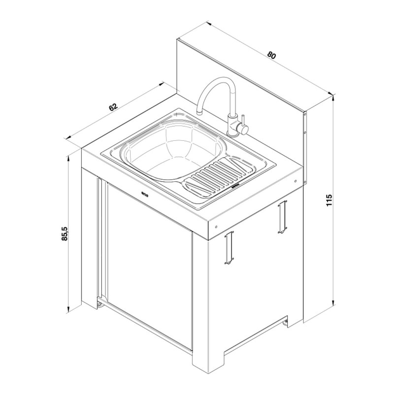 Progettato per avere un punto acqua nella tua cucina estiva, il modulo lavello rettangolare è dotato di miscelatore pronto per il collegamento, sifone e piletta.