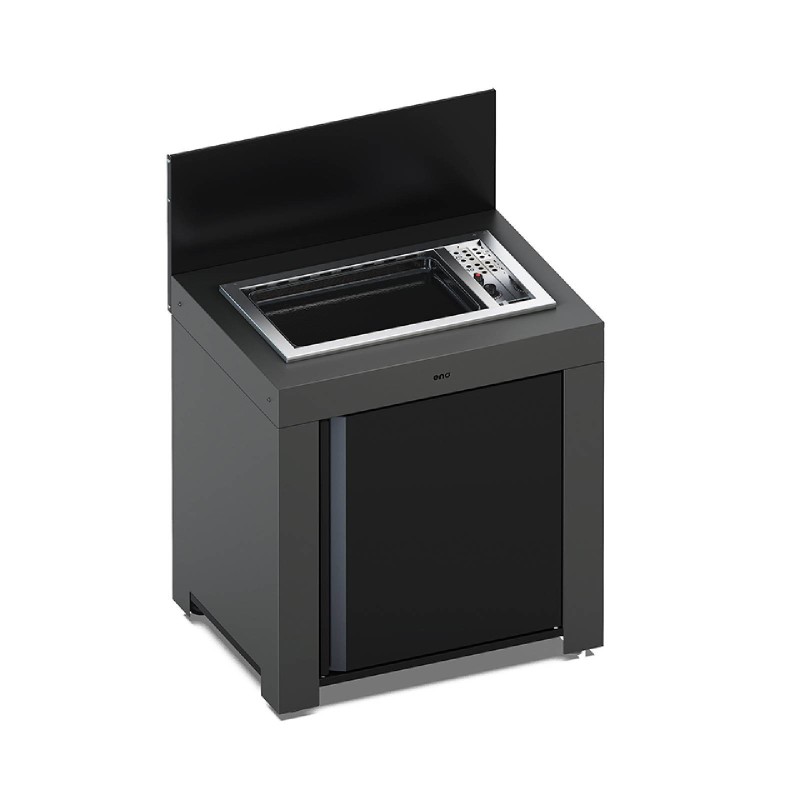 Questo modulo è dotato di un vano per i tuoi accessori (tagliere, utensili, cloche, spatole, ecc.) e di uno schienale nero antispruzzo.