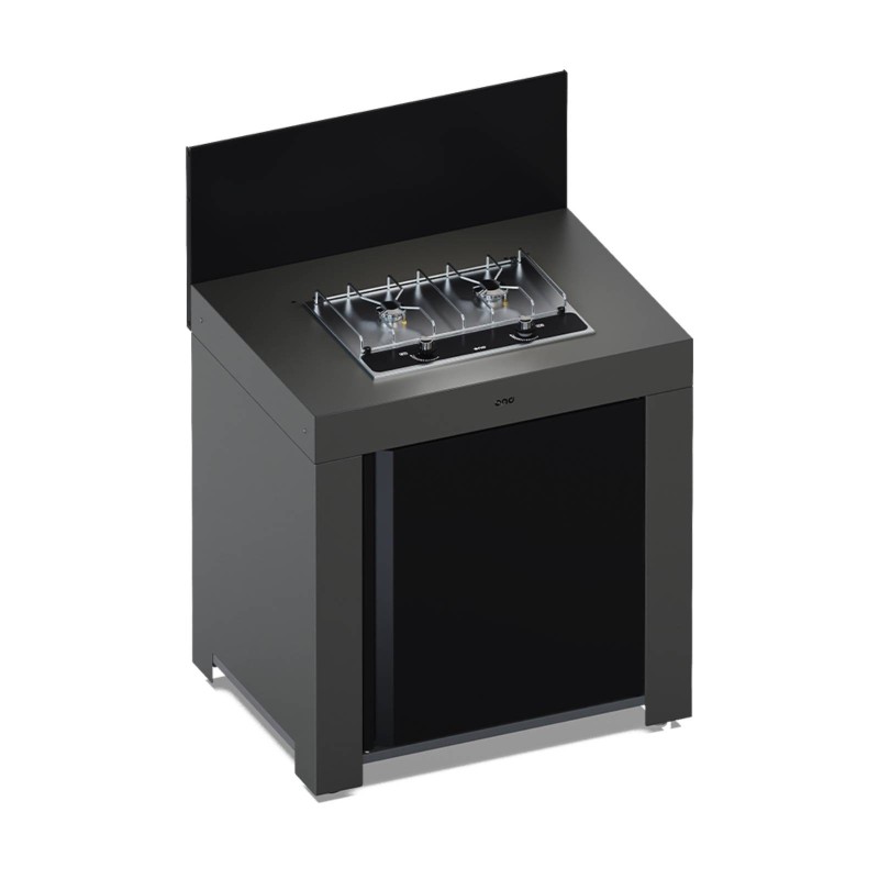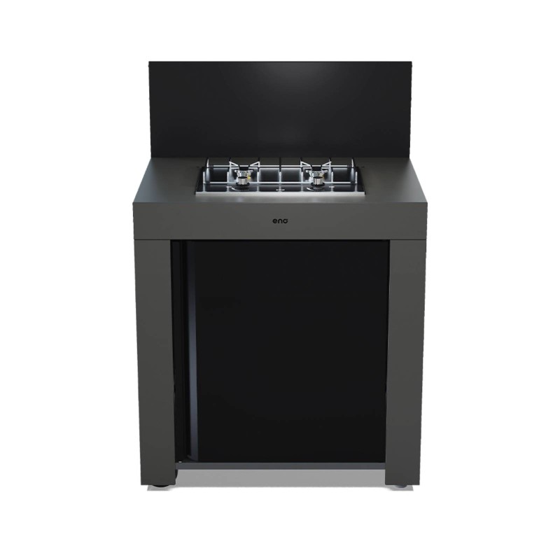 Con Modulo Master in grigio scuro, offri un mobile perfettamente adattato al tuo piano cottura Master a 2 fuochi per creare la cucina da esterno ENO a tuo piacimento.